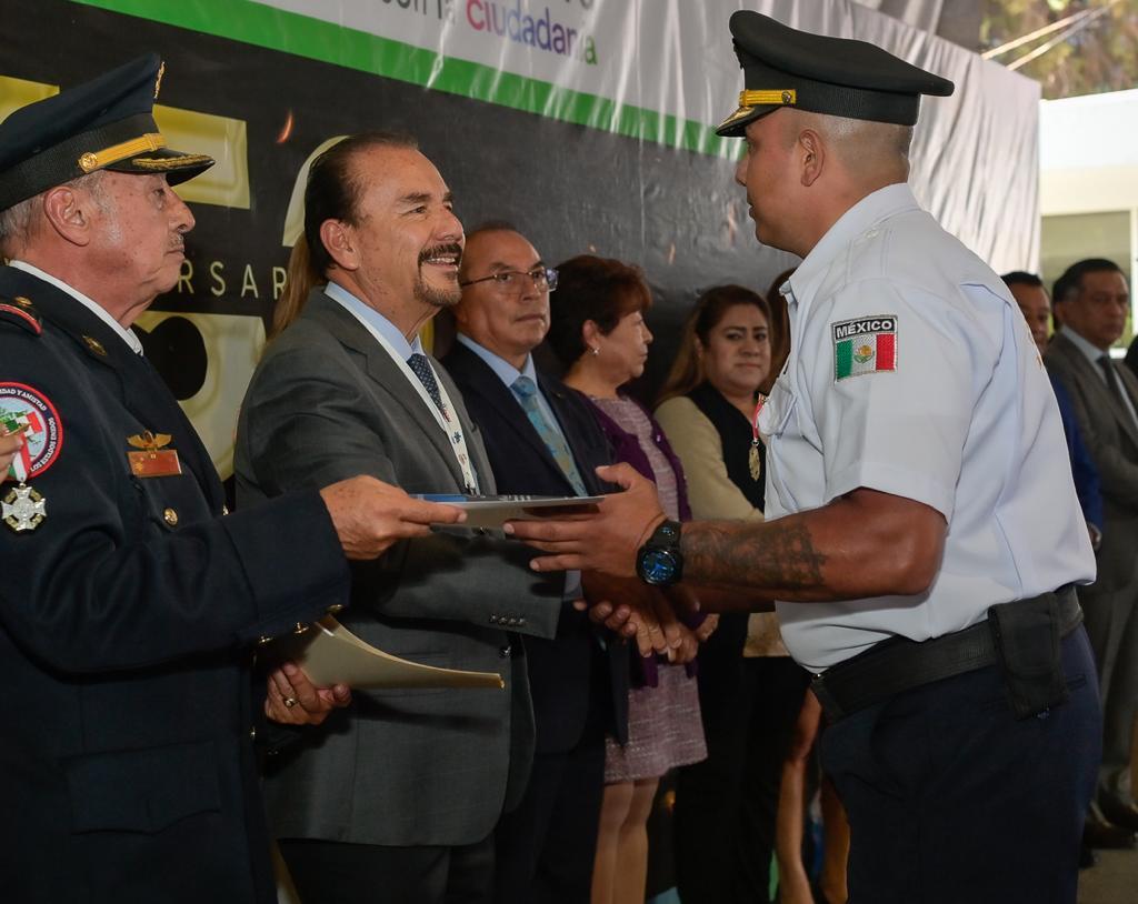 También destacó la profesionalización de los cuerpos de Emergencia y que Atizapán de Zaragoza, que cuenta con 50 bomberos y 24 paramédicos, es el primer municipio del País que tiene un curso de Técnico Básico en Gestión Integral de Riesgos.