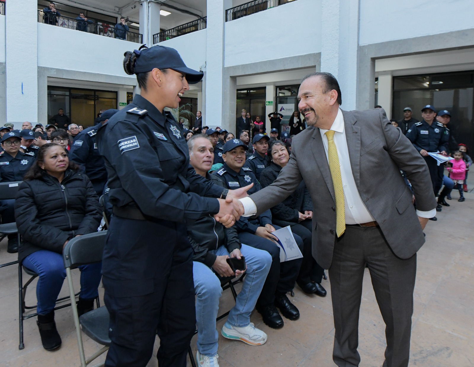 En una ceremonia llevada a cabo en el patio central del Palacio Municipal, los uniformados recibieron su reconocimiento y su grado policial por su desempeño durante su formación académica y operativa.
