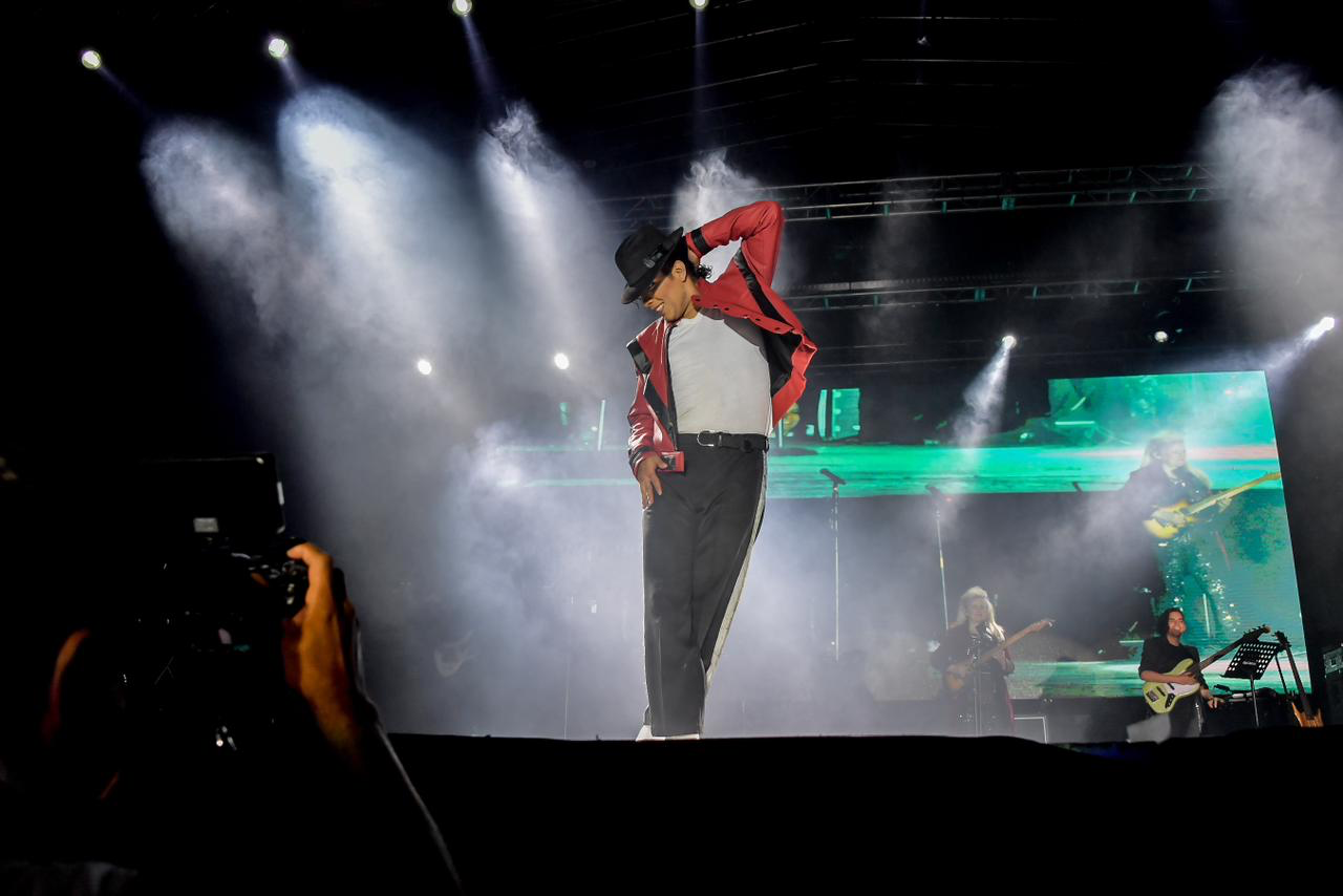 Fueron más de 40 músicos y bailarines reunidos en el escenario quienes hicieron cantar y bailar a las y los asistentes los más grandes éxitos del multipremiado artista norteamericano, con temas y coreografías memorables como “Thriller”, “Smooth Criminal” y “Beat It”.
