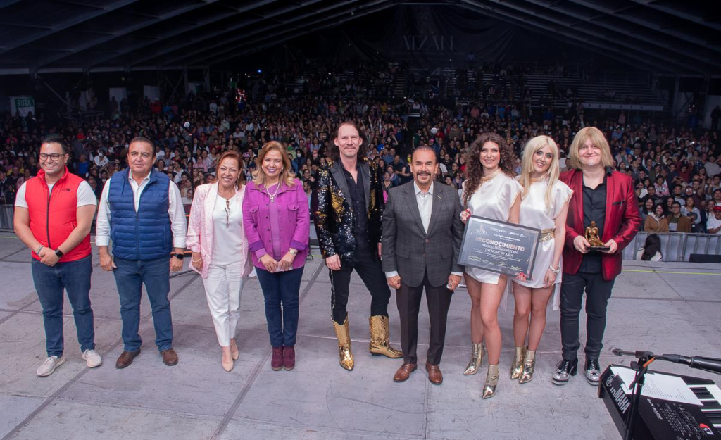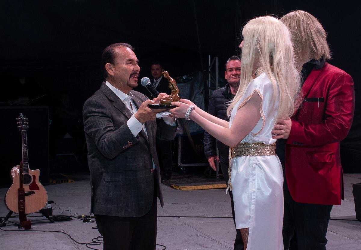 Antes de finalizar el show, el Presidente Municipal, Pedro Rodríguez Villegas entregó a la agrupación un reconocimiento y una estatuilla de la Diosa de las Artes Atzán, por su participación en el Festival.