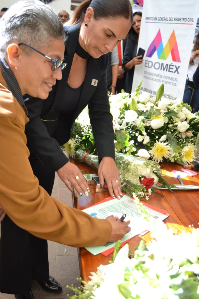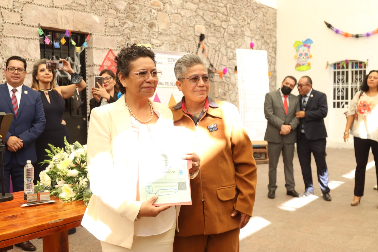 Después de que el gobernador del Estado de México, Alfredo Del Mazo Maza, promulgara la ley que permite que las parejas del mismo sexo puedan casarse, la cual entra en vigor a partir de este 2 de noviembre, María del Rosario Vilchis y Leticia Chávez son el primer matrimonio igualitario en la entidad en contraer nupcias.