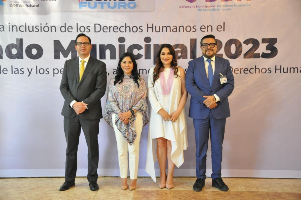 La presidenta municipal, Karla Fiesco García estuvo presente en el Foro «La inclusión de los Derechos Humanos en el Bando Municipal 2023 para la protección de las y los periodistas, así como Defensores de los Derechos Humanos», donde la Comisión de Derechos Humanos del Estado de México reconoció el trabajo realizado en el Bando Municipal donde se prioriza los derechos humanos.