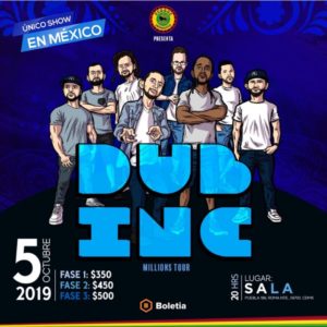 Dub inc regresa a México este 5 de Octubre en Sala Puebla CDMX, presentando nuevo disco en su gira Millions Tour, después de una increíble actuación en vivo junto a Panteón Rococó en sus infiernos en la Arena Ciudad de México en abril 2019.