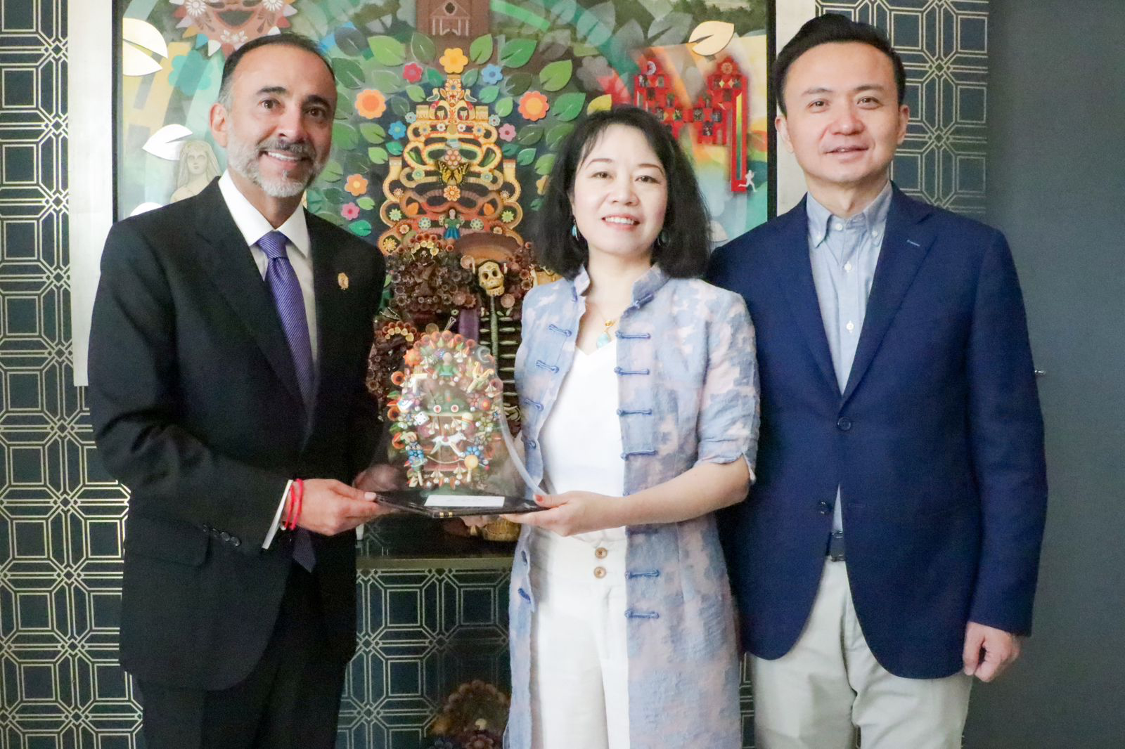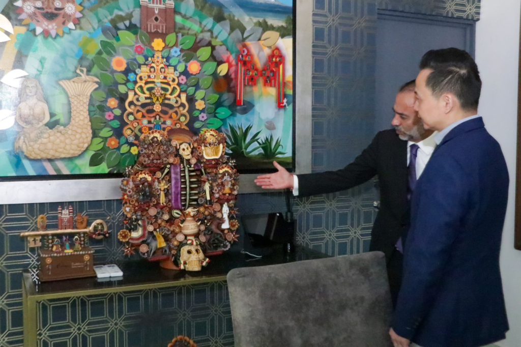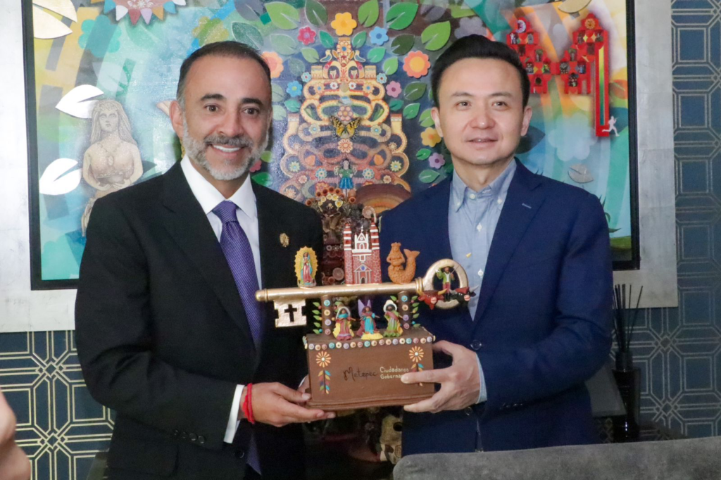 En el edificio del palacio municipal, el alcalde de Metepec, Fernando Flores Fernández, recibió al Embajador de China, excelentísimo Zhang Run y su señora esposa Duan Niyan, así como a integrantes de la diplomacia de la República Popular. Durante su estadía en la Original Tierra del Árbol de la Vida, se atendió una agenda bilateral que busca, a la brevedad, consolidar proyectos académicos para beneficio de estudiantes metepequenses, así como un intercambio cultural; en tanto, la representación de China en México, conoció parte de la riqueza de Metepec, sus tradiciones, costumbres y edificios emblemáticos. Metepec sigue en la mira mundial.