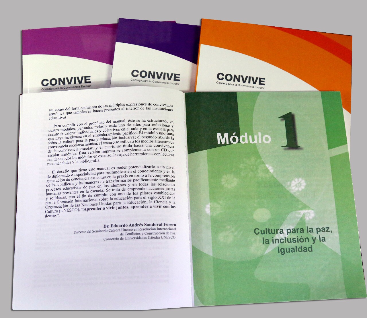 Como eje central de este programa, el Convive elaboró una serie de manuales de trabajo dirigidos a docentes, alumnos y padres de familia de todos los niveles educativos de la entidad, en los que se brindan herramientas teóricas y prácticas para el fortalecimiento de la convivencia armónica.