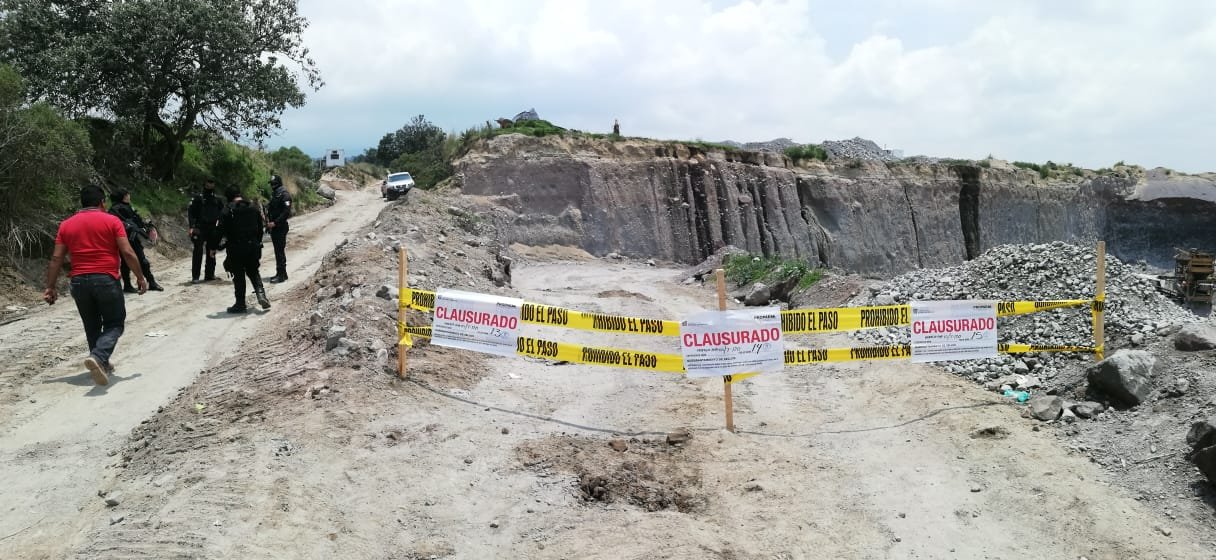 *Toluca, Estado de México, 12 de julio de 2019.* Derivado de una denuncia ciudadana y con el apoyo de elementos de la Secretaría de Seguridad del Estado de México (SSEM) inspectores de la Procuraduría de Protección al Ambiente del Estado de México (Propaem) clausuraron dos minas de materiales pétreos ubicadas en el sitio conocido como Los Ejidos y el Paraje Los Corralitos, del poblado de Santiago Tlacotepec, en los límites con el Nevado de Toluca.