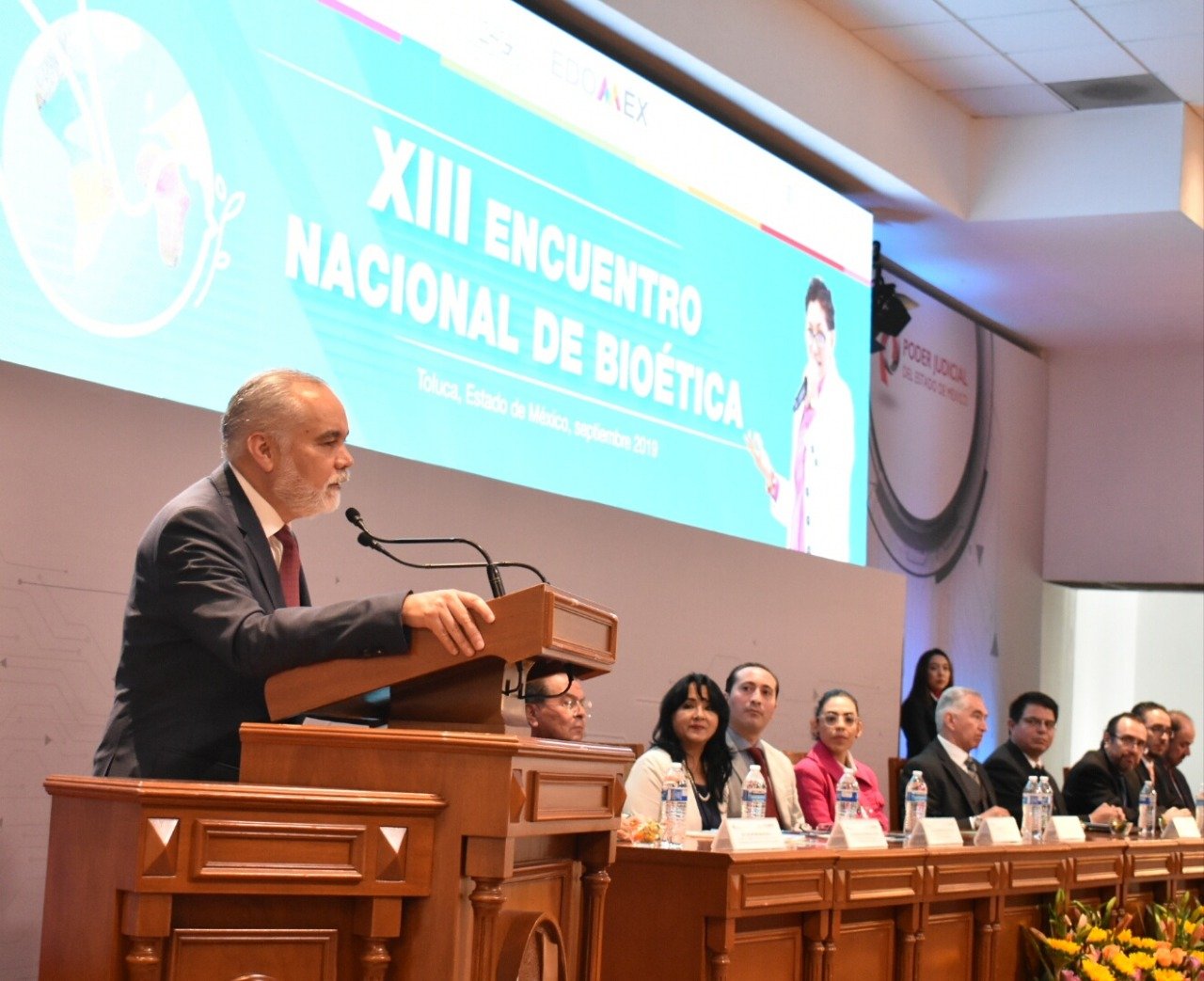 *Toluca, Estado de México, 25 de septiembre de 2019.* El Estado de México es sede del XII Encuentro Nacional de Bioética, evento que coadyuvará a dignificar y fortalecer el actuar médico para lograr el objetivo de preservar el bienestar de las familias mexiquenses, mediante el impulso de valores en cada una de las unidades de salud, para mejorar los servicios y la atención, rubros prioritarios para la administración del Gobernador Alfredo Del Mazo Maza.