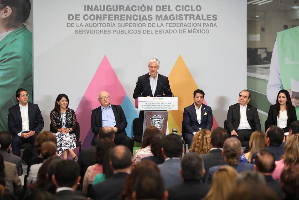 «El Gobierno del Estado de México, junto con el Instituto de Capacitación y Desarrollo en Fiscalización Superior de la Fiscalía Superior de la Federación, inauguramos este ciclo de conferencias magistrales para servidores públicos de todo el Estado de México.
