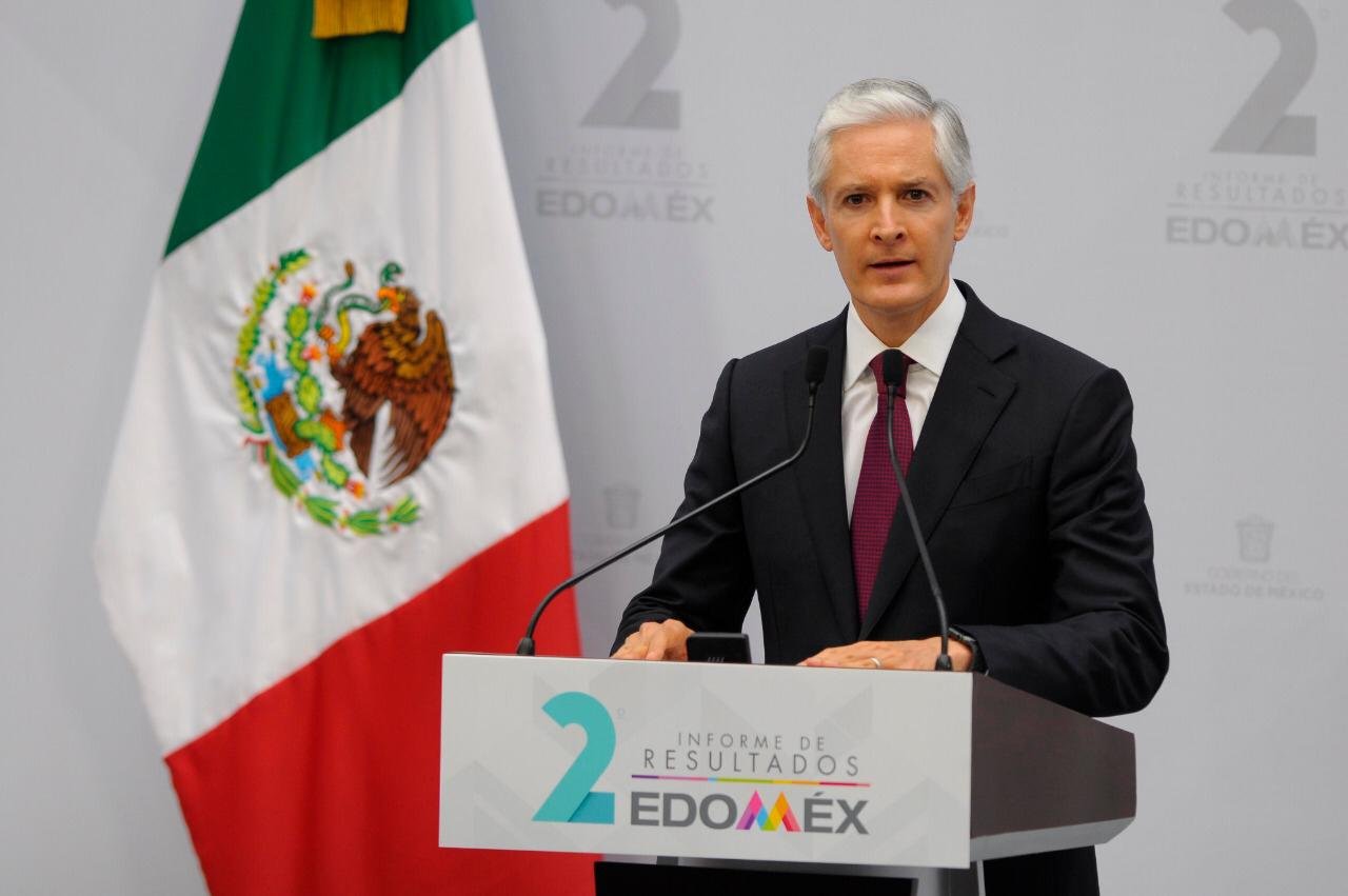 *Toluca, Estado de México, 24 de septiembre de 2019.* Al presentar su Segundo Informe de Resultados, el Gobernador Alfredo Del Mazo Maza destacó que la incidencia de los delitos de alto impacto en el Estado de México registró una disminución de 1.7 por ciento, en tanto que el robo a vehículos se redujo en 8.4 por ciento, y subrayó que para ofrecer mayor seguridad a la ciudadanía, también se renovó la infraestructura de los cuerpos de seguridad y de las instituciones de procuración de justicia, para lo que se destinó un 20 por ciento más al presupuesto de seguridad pública.