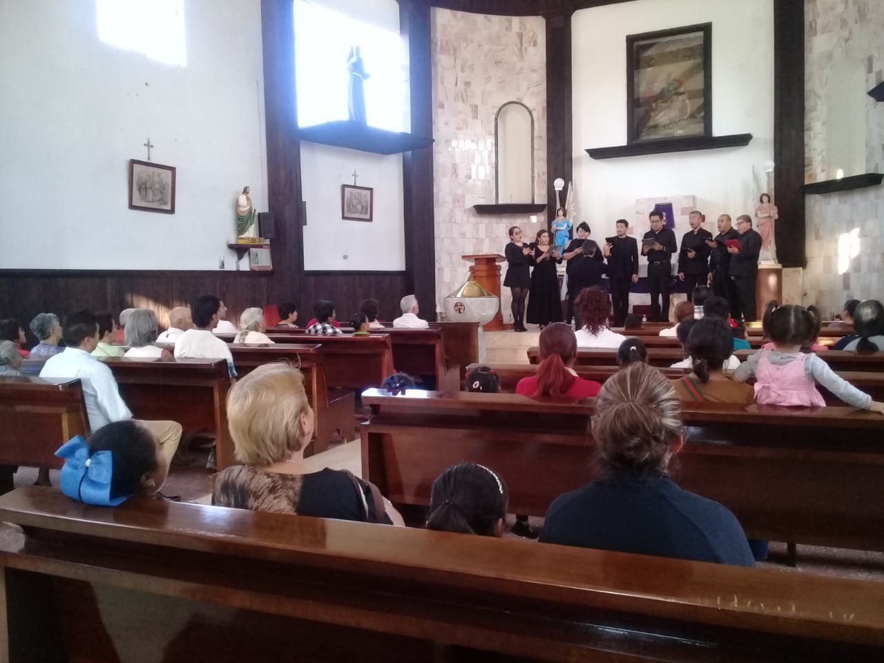 Toluca, Estado de México, 17 de marzo de 2019. Bajo la dirección de Jesús Lujambio, el Octeto Vocal de la Secretaría de Cultura celebró su primer recital de la Gira de Conciertos 2019, que tuvo lugar en la Parroquia de la Trinidad, en el municipio de Tenancingo.