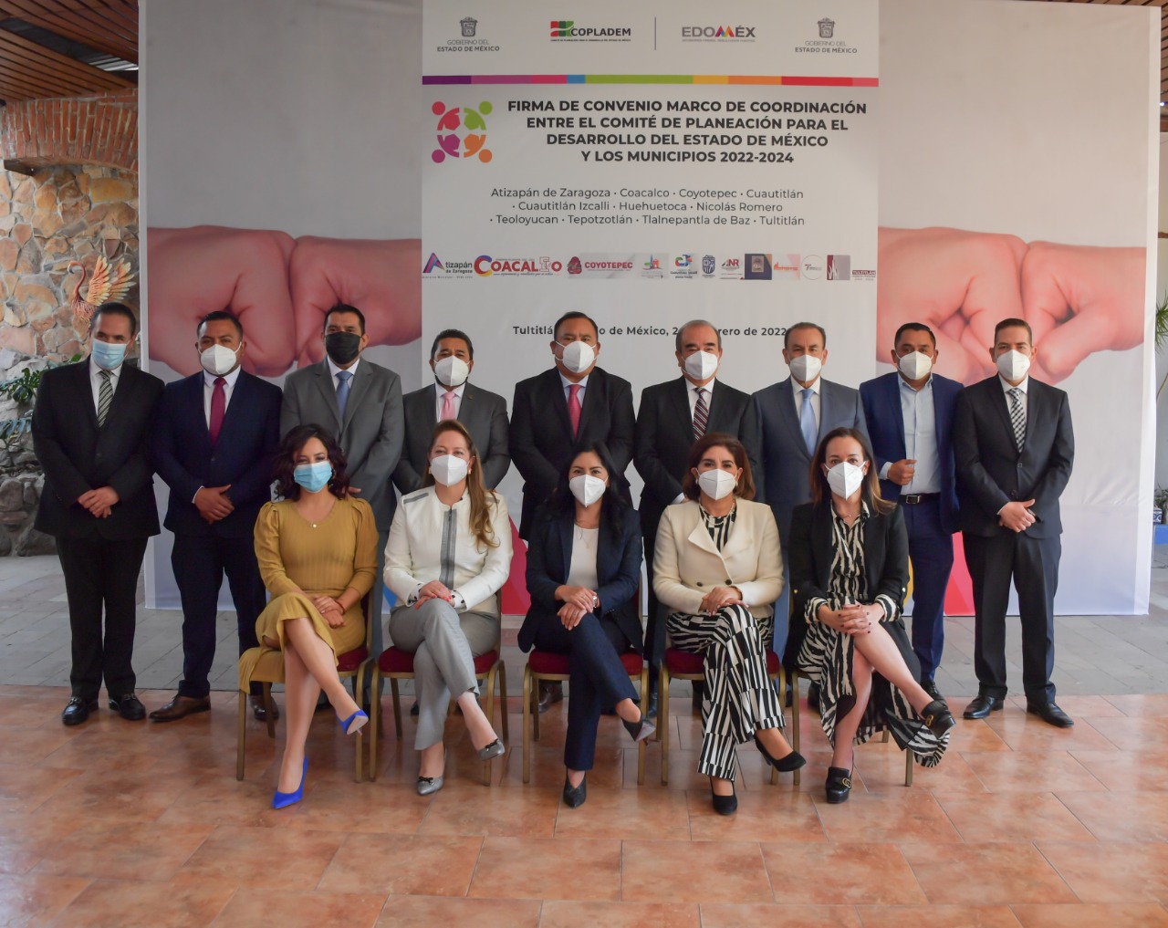 Los presidentes municipales que firmaron el Convenio Marco de Coordinación entre el Comité de Planeación para el Desarrollo del Estado de Mexico 2022-2024 fueron Pedro Rodríguez Villegas, Presidente Municipal de Atizapán de Zaragoza; David Sánchez Isidoro, Coacalco de Berriozábal; Andrés Óscar Montoya Martínez, Coyotepec; Aldo Ledezma Reyna, Cuautitlán; Karla Leticia Fiesco García, Cuautitlán Izcalli; Milton Castañeda Díaz, Huehuetoca; Armando Navarrete López, Nicolás Romero; Juan Carlos Uribe Padilla, Teoloyucan; María de los Ángeles Zuppa Villegas, Tepotzotlán; Marco Antonio Rodríguez Hurtado; Tlalnepantla de Baz y Elena García Martínez de Tultitlán.