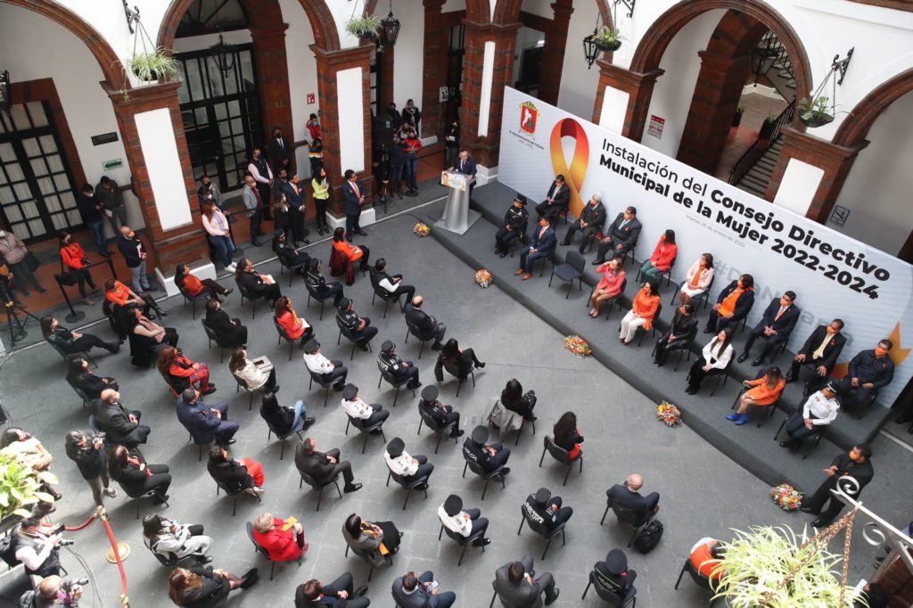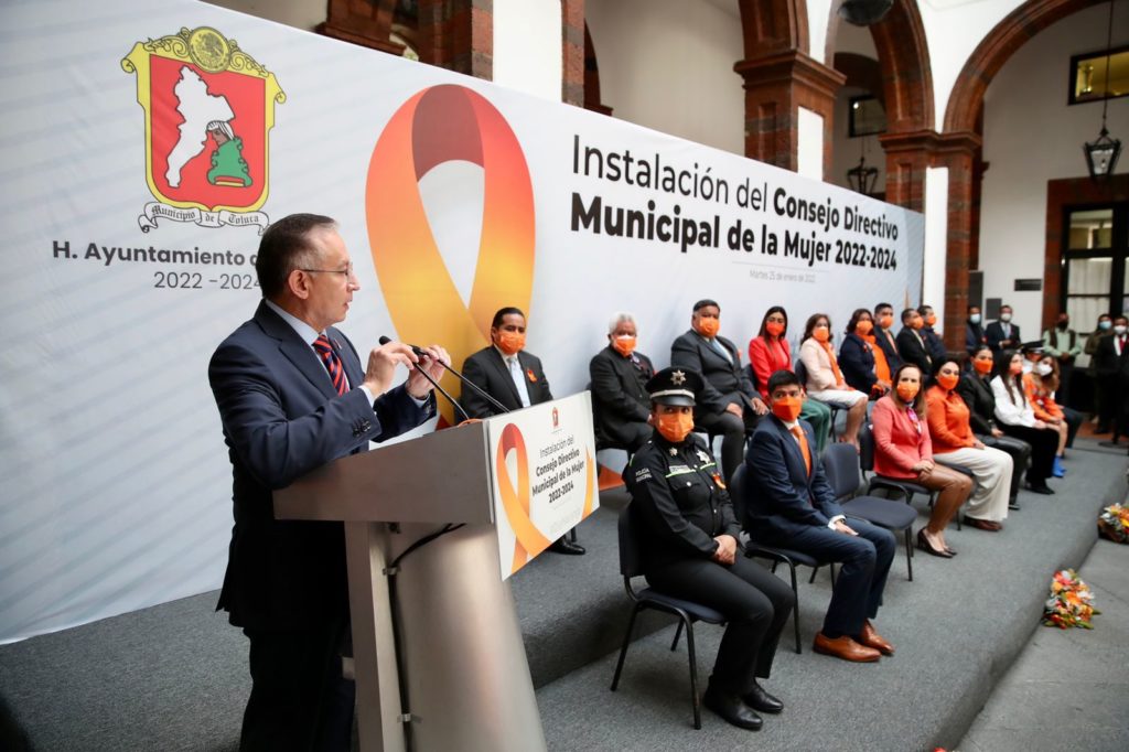 Toluca, Estado de México, 25 de enero de 2022.- La violencia de género no es tema ajeno a nadie, de ahí la necesidad imperante de generar políticas públicas que en verdad beneficien a las mujeres y a sus familias, manifestó el Presidente Municipal de Toluca, Raymundo Martínez Carbajal, al instalar el Consejo Directivo Municipal de la Mujer 2022-2024.