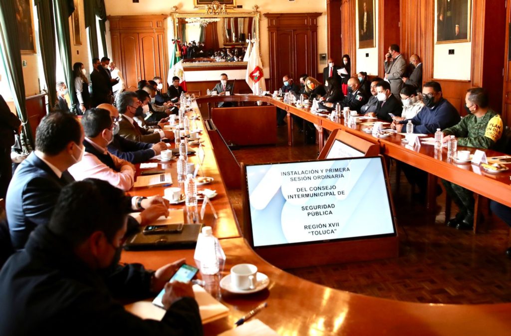 Toluca, Estado México, 8 de febrero de 2022.- Se realizó la instalación y la Primera Sesión Ordinaria del Consejo Intermunicipal de Seguridad Pública Región XVII conformada por los municipios de Toluca y Zinacantepec, el cual será presidido por el alcalde de la capital durante el año 2022.