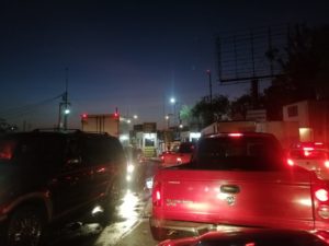 Sin presencia de las autoridades cientos de autos pitan y muestran su enojo pues aseguran tener horas esperando mover su auto tan solo unos metros.