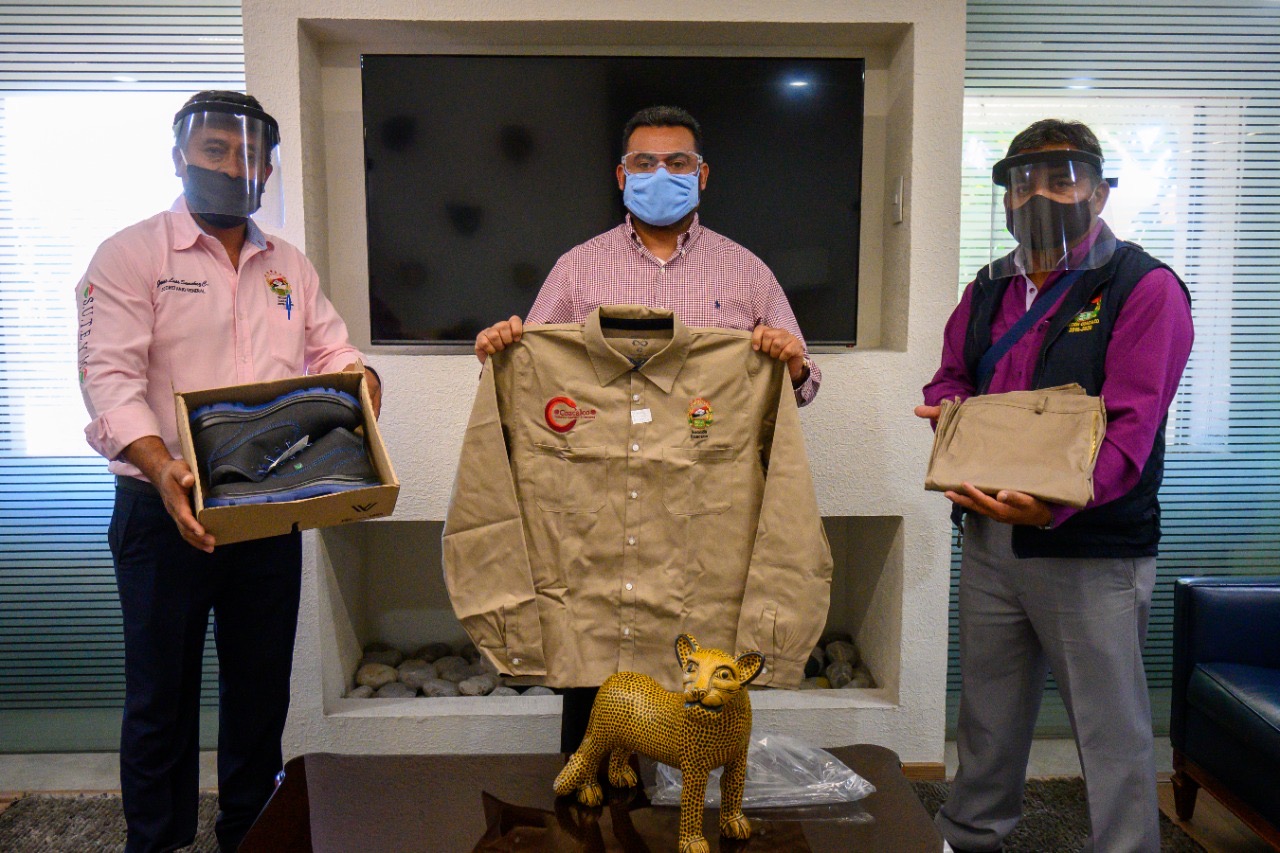 Darwin Eslava entregó uniformes que constan de gorra, playera, pants y tenis, así como equipos de trabajo, consistentes en camisola y botas, para el personal de campo de Servicios Públicos.