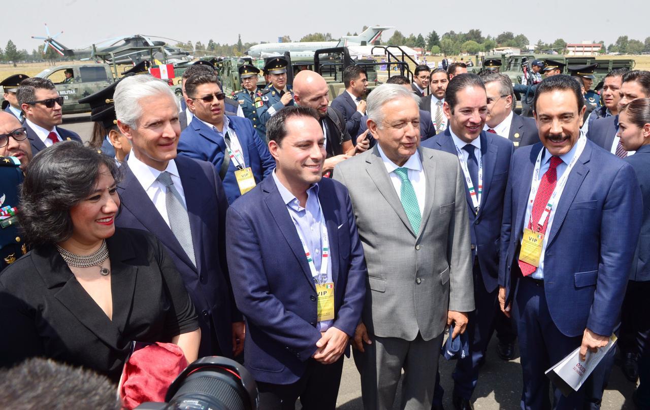 Agregó que durante la Feria Aeroespacial se pondrá a la venta una flotilla de 72 aeronaves pertenecientes al Gobierno de la República, y que, al igual que la venta del avión presidencial, estará supervisada por miembros de la Organización de las Naciones Unidas (ONU), y anticipó que se prevé recaudar cerca de 10 mil millones de pesos que se destinarán al desarrollo y al bienestar del pueblo mexicano.