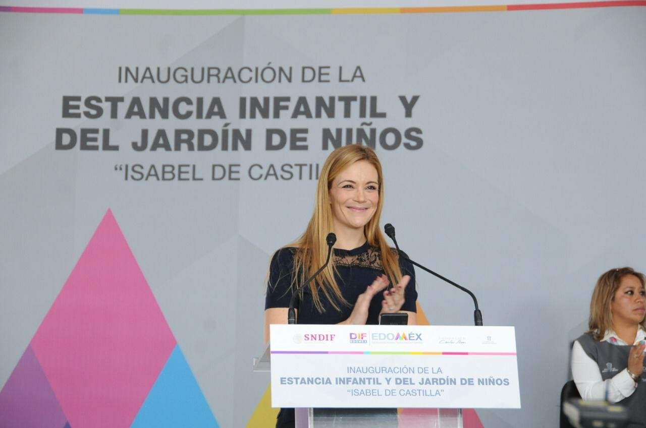 Luego de recorrer las nuevas instalaciones de la Estancia Infantil y el Jardín de Niños “Isabel de Castilla”, Del Mazo Maza explicó que por los daños que sufrió esta escuela por el sismo, se requería de una construcción nueva, y reconoció la labor realizada por el DIFEM, especialmente por Fernanda Castillo, para lograr concretar que de manera coordinada entre los gobiernos federal y estatal, así como la Fundación Slim, aportaran recursos para recuperar este espacio.