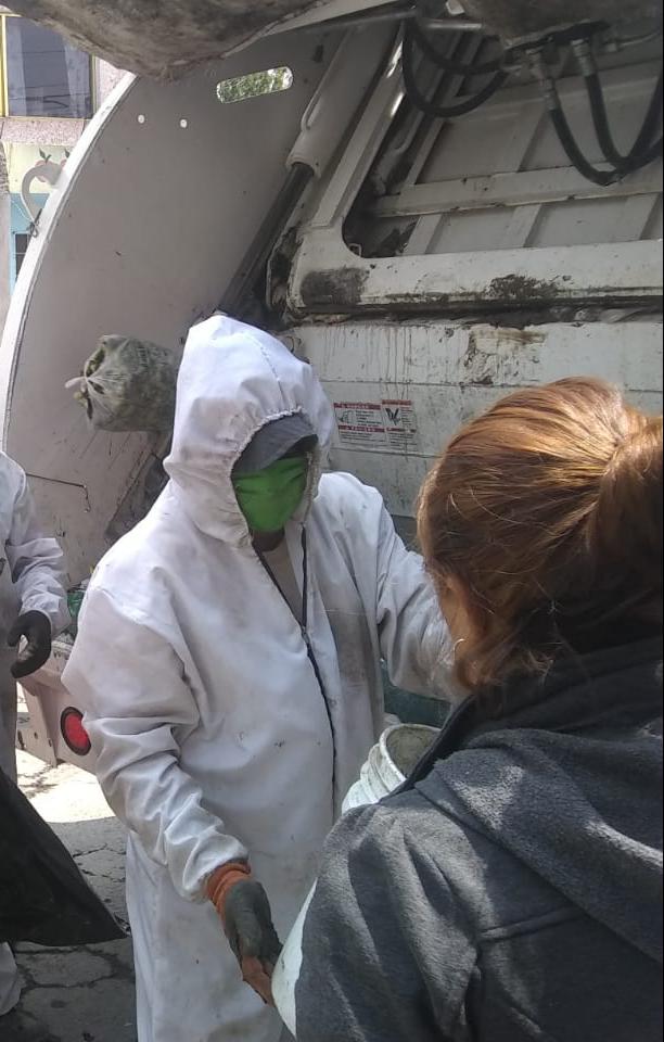 Guadalupe Almeida Alcántara, quien radica en el Barrio de San Mateo, mencionó que “es bueno ayudar a las personas y en este caso cuidar a los trabajadores que andan recogiendo la basura sobre todo ahora que el virus lo puede contraer cualquiera, más ellos que andan haciendo este trabajo delicado por lo que se les agradece y valora”.