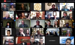 Atizapán de Zaragoza, a 22 de julio de 2020.- Mediante sesión virtual, el Club Rotario Zona Esmeralda, perteneciente al Distrito 4170, celebró su ceremonia de abotonamiento la noche del martes; en un evento que, a pesar de no ser presencial, tuvo una fuerte carga de emotividad. En el mismo, el gobernador del distrito rotario, Jesús Calderón, tomó protesta a la presidenta del club, Lora Mirkova; a su vez, la presidenta del club, en compañía de Susy Howe, directora de Rotary de la Región 32 (una autoridad de rotaria de carácter internacional), abotonó a los 34 socios fundadores de dicho club.