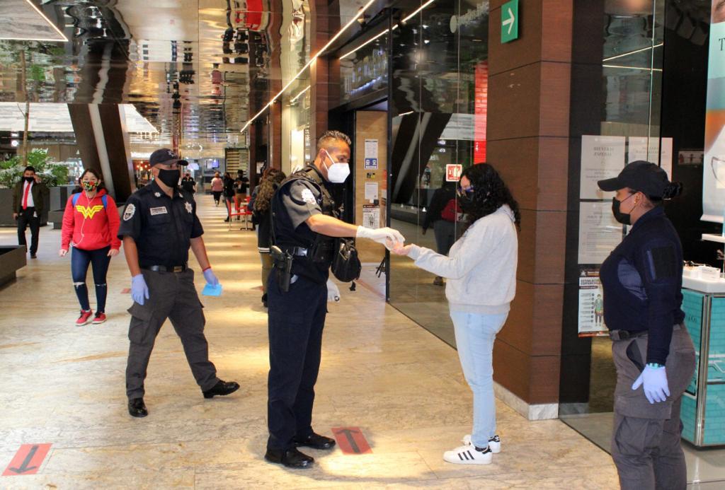 Los uniformados recorrieron algunos de los centros de comercio con mayor afluencia en la demarcación, como Plaza Satélite, La Cúspide Sky Mall, Toreo Parque Central y la zona del Mexipuerto Cuatro Caminos. Vigilaron que los establecimientos acotaran el aforo de visitantes al 20 por ciento, tomaran la temperatura de la gente y brindaran gel antibacterial.