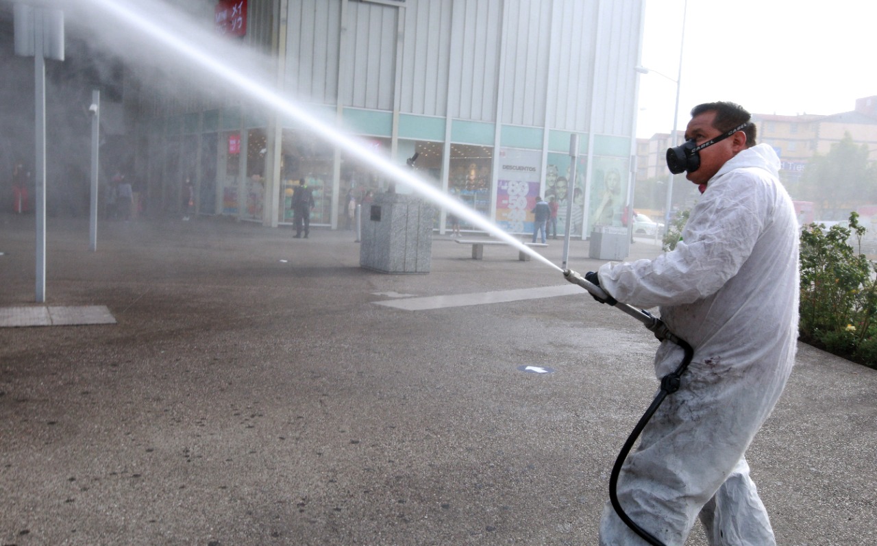 Como parte de las acciones para mitigar el riesgo de contagio de coronavirus, el Gobierno de Naucalpan llevó a cabo una jornada de sanitización y concientización ciudadana, en un área aproximada de 3 mil metros cuadrados, en las instalaciones del Mexipuerto Cuatro Caminos.
