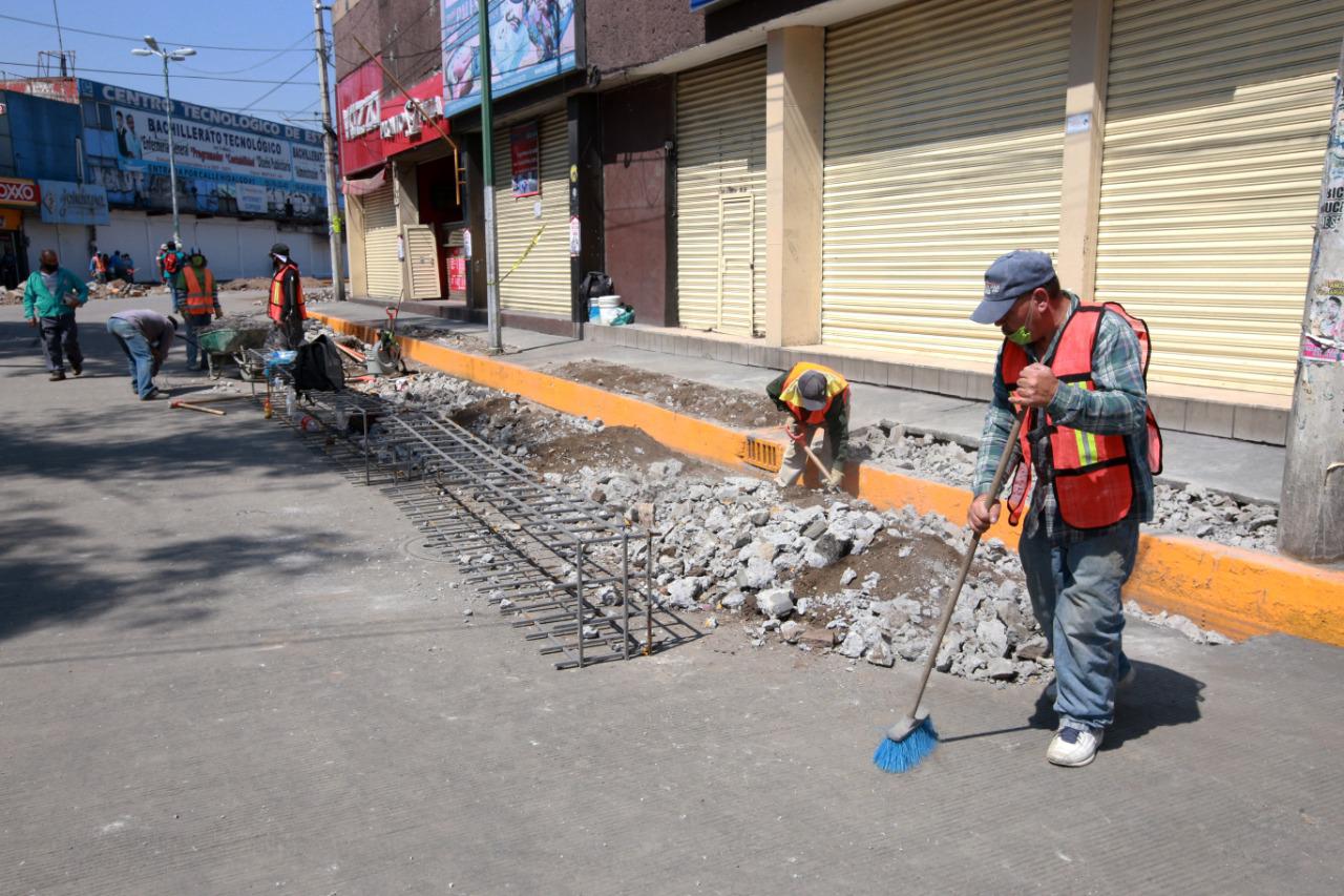 Empleados de la Secretaría de Planeación Urbana y Obras Públicas y de la Secretaría de Servicios Públicos han realizado trabajos de mantenimiento y rehabilitación en las calles de la Cabecera Municipal, conocida como San Bartolo.
