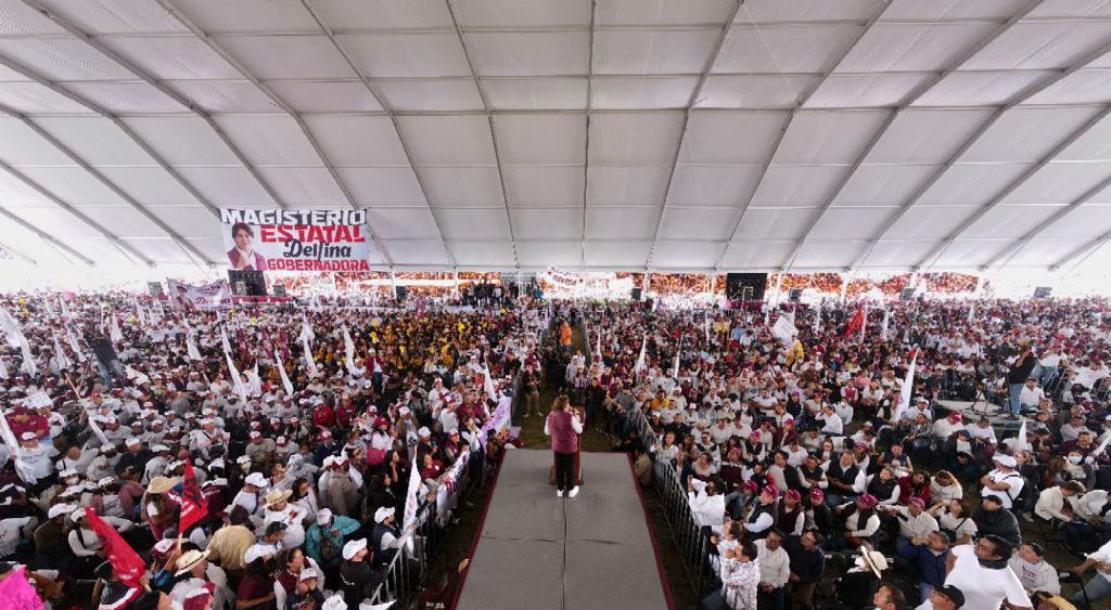 Ante más de 40 mil integrantes del magisterio mexiquense, la candidata a gobernadora por MORENA, PT y PVEM, la maestra Delfina Gómez reiteró que asume “como propias cada una de sus luchas. Por eso el Gobierno del Estado de México dejará de ser un obstáculo para convertirse en uno de ustedes”.