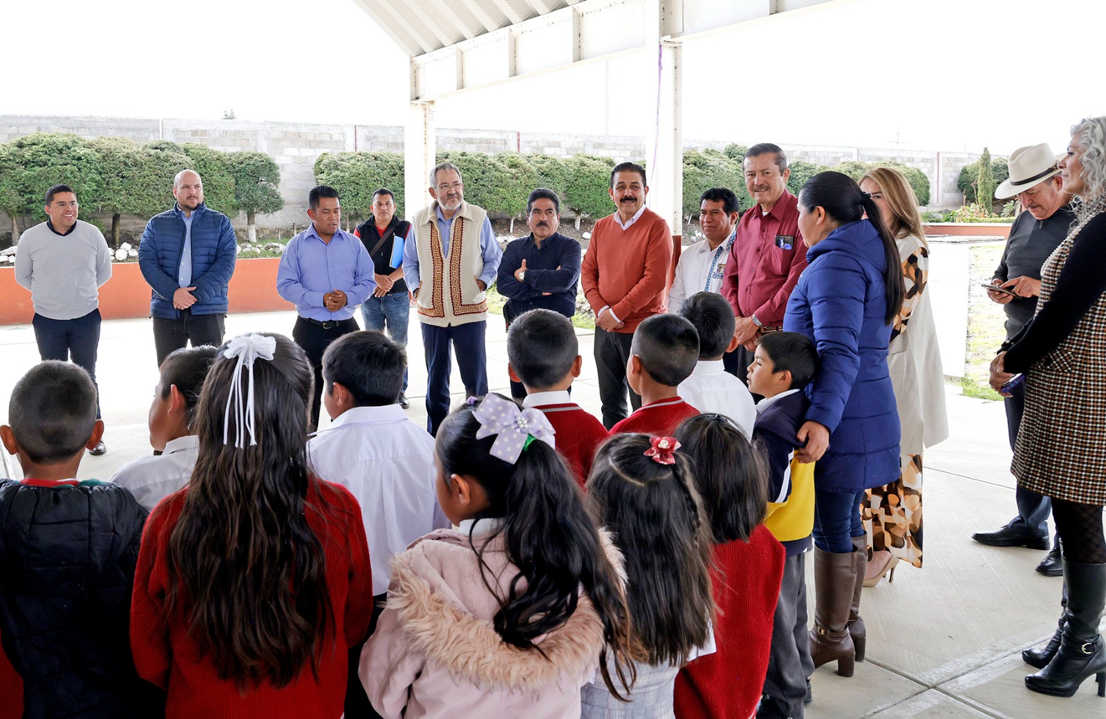 “Seguimos recorriendo las escuelas para atender de manera directa sus necesidades; más territorio, menos escritorio, como instruyó la Gobernadora Delfina Gómez Álvarez”, dijo.