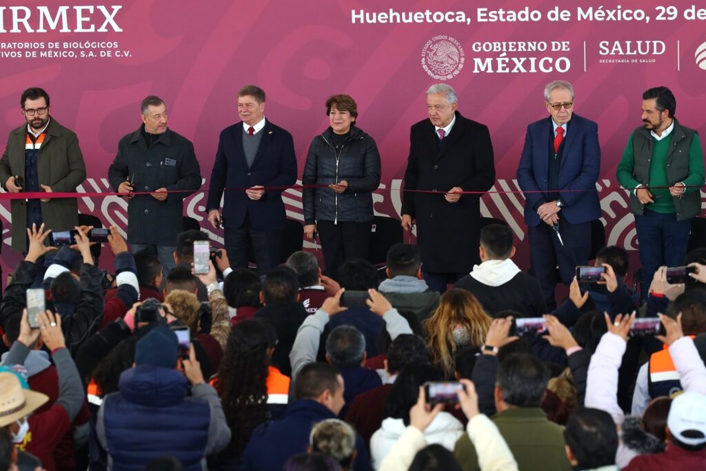 HUEHUETOCA, Estado de México.- El Presidente de México, Andrés Manuel López Obrador, acompañado de la Maestra Delfina Gómez Álvarez, Gobernadora del Estado de México, inauguraron la Megafarmacia del Bienestar en Huehuetoca, Estado de México, la más grande del mundo que permitirá abastecer de medicamentos gratuitos a centros de salud, clínicas y hospitales de todo el país en un plazo máximo de 24 a 48 horas.