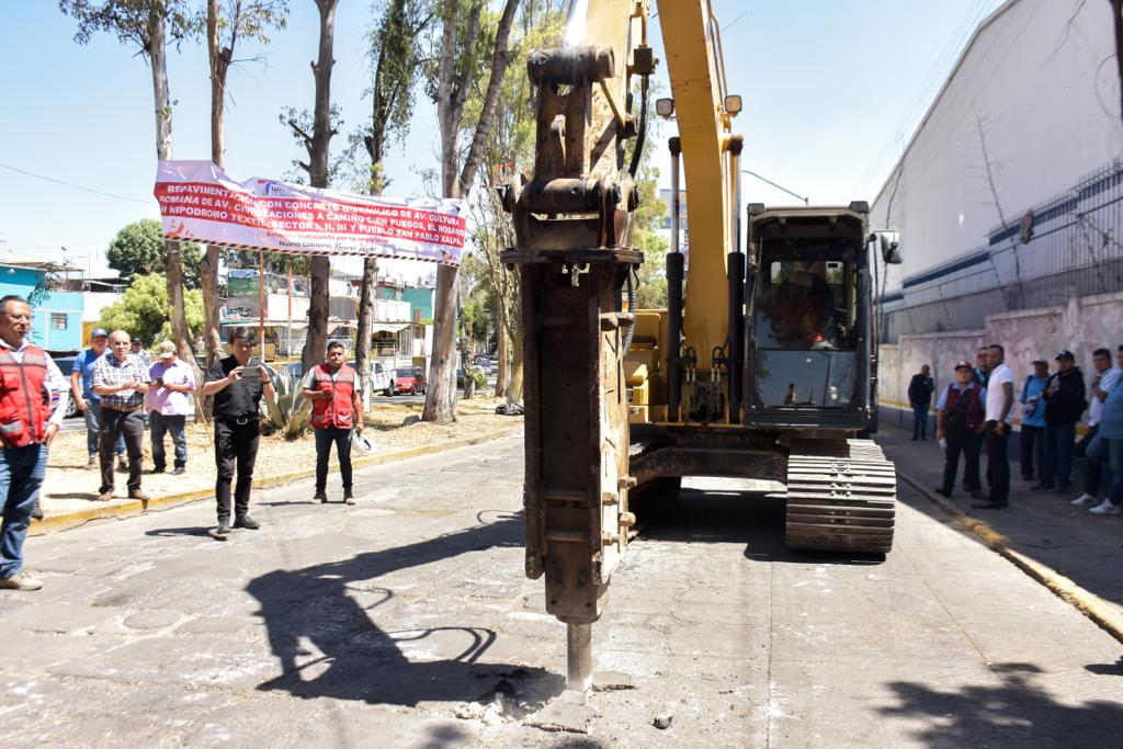 Arrancan trabajos de repavimentación con concreto hidráulico en Avenida Cultura Romana de San Pablo Xalapa, con inversión de 39.1 MDP