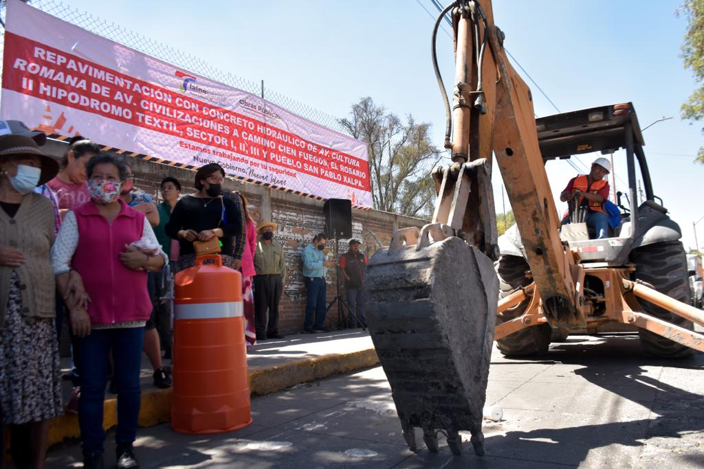 A su vez, el Director de Obras Públicas, Luis Armando Dorado explicó los alcances de los trabajos de repavimentación con concreto hidráulico de la avenida Cultura Romana, desde Civilizaciones a Camino Cien Fuegos, que comprende la Unidad Habitacional El Rosario II Hipódromo Textil, sector I, II, III y Pueblo de San Pablo Xalpa.