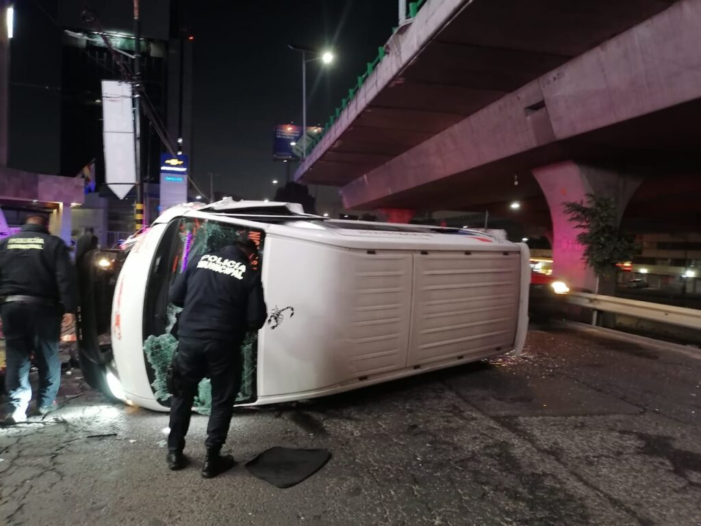 Atienden la volcadura de una unidad de transporte publico en Tlalnepantla de baz