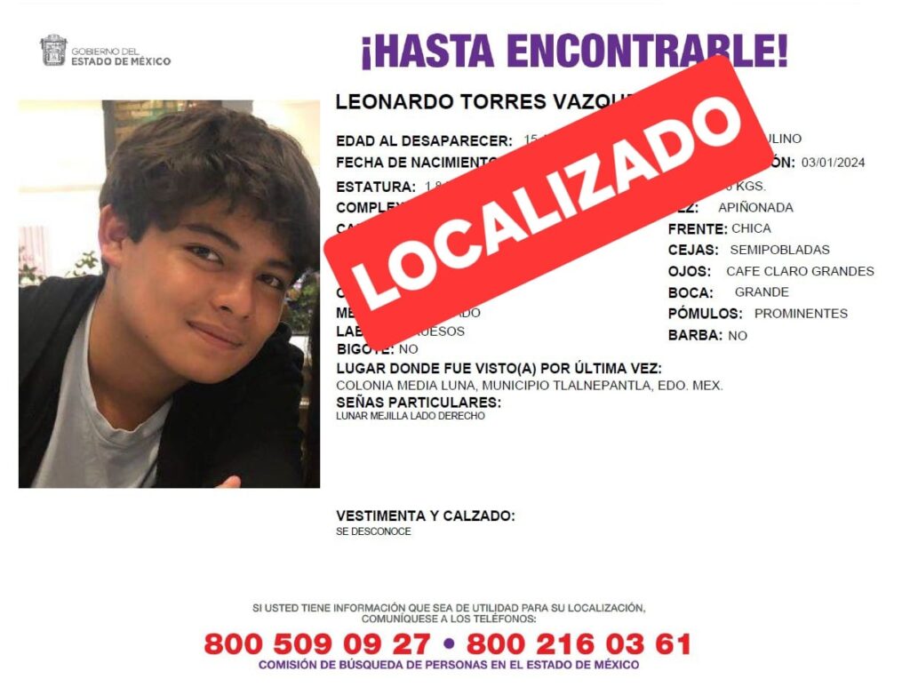 Fue hasta este domingo que elementos de Seguridad Pública de Izcalli, localizaron a ambos menores en calles de dicho municipio. De acuerdo a los protocolos de actuación los menores fueron entregados a la Célula de Búsqueda de Tlalnepantla, quienes los sometieron a la revisión médica por parte de personal de Protección Civil y de inmediato puestos a resguardo, se trasladaron a la agencia del Ministerio Público Especializado para dar de baja los boletines de búsqueda y reintegrarlos a los familiares de los menores ausentados de manera voluntaria.