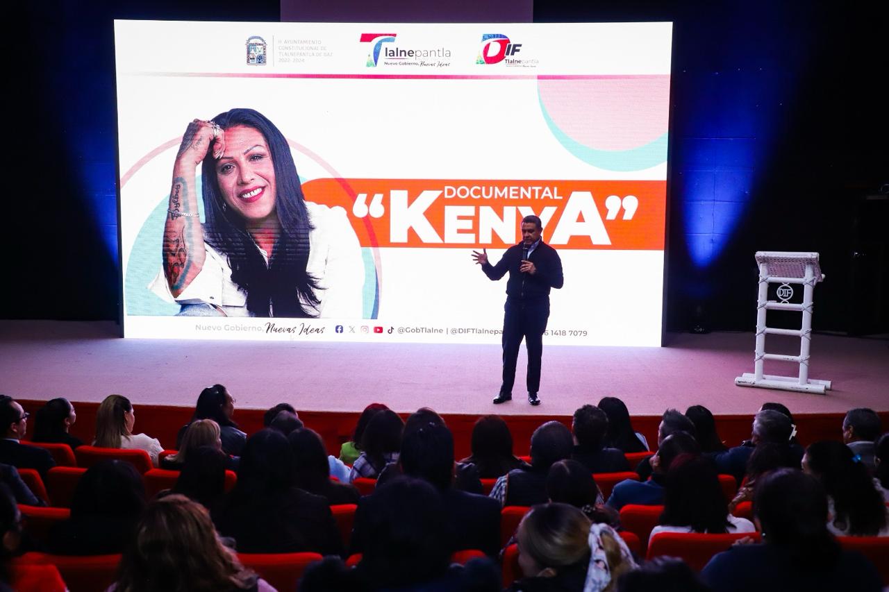 Agradeció a la activista trans y defensora de los derechos humanos, Kenya Cuevas, por presentar en Tlalnepantla este documental que ha trascendido a nivel internacional y que muestra su lucha diaria por evitar que más mujeres como ella sigan siendo víctimas del odio, por el simple hecho de mostrarse tal cual son.
