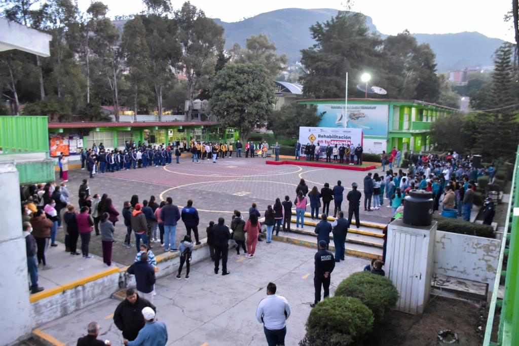 A su vez, la alumna Vanessa Barrientos agradeció el apoyo del Gobierno de Tlalnepantla para rehabilitar su escuela, la cual, indicó, carece de aulas dignas. Además pidió que haya un ambiente sano dentro del plantel.