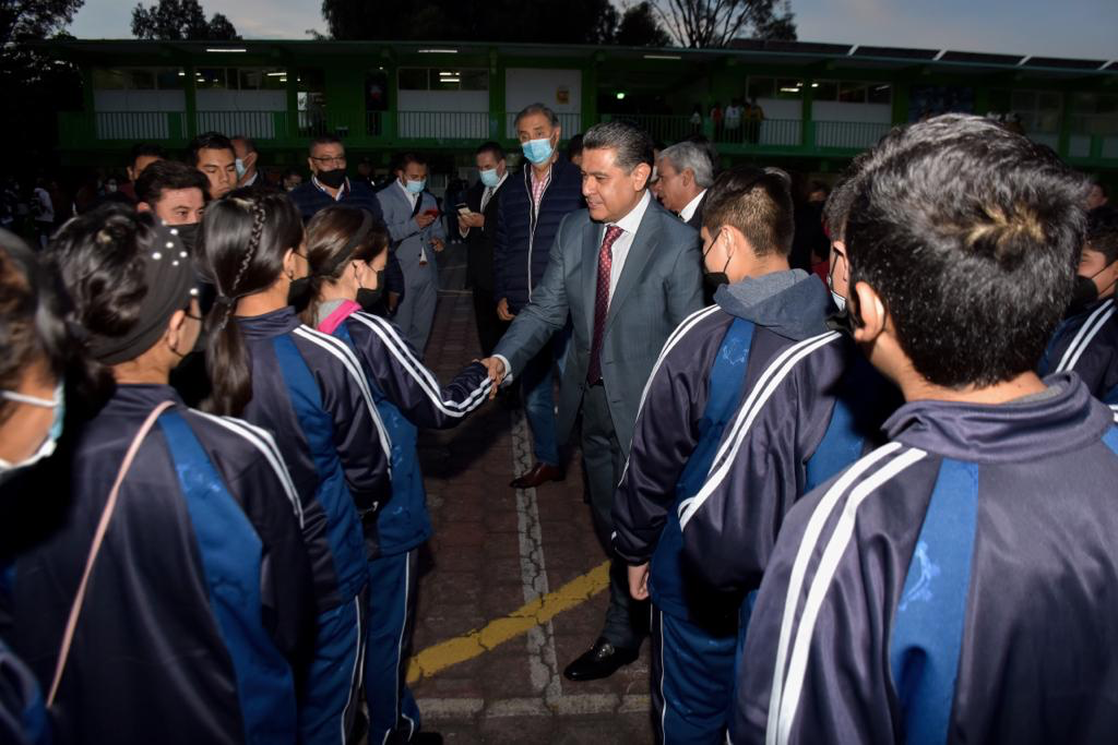 Durante el inicio de la rehabilitación de la Escuela Secundaria Técnica 37, “Quetzalcóatl”, en el pueblo de Santa Cecilia Acatitlán, con una inversión de 2,068,580 pesos, destacó que muchas escuelas sufrieron afectaciones por la suspensión de clases debido a la pandemia de Covid, incluso actos de rapiña.