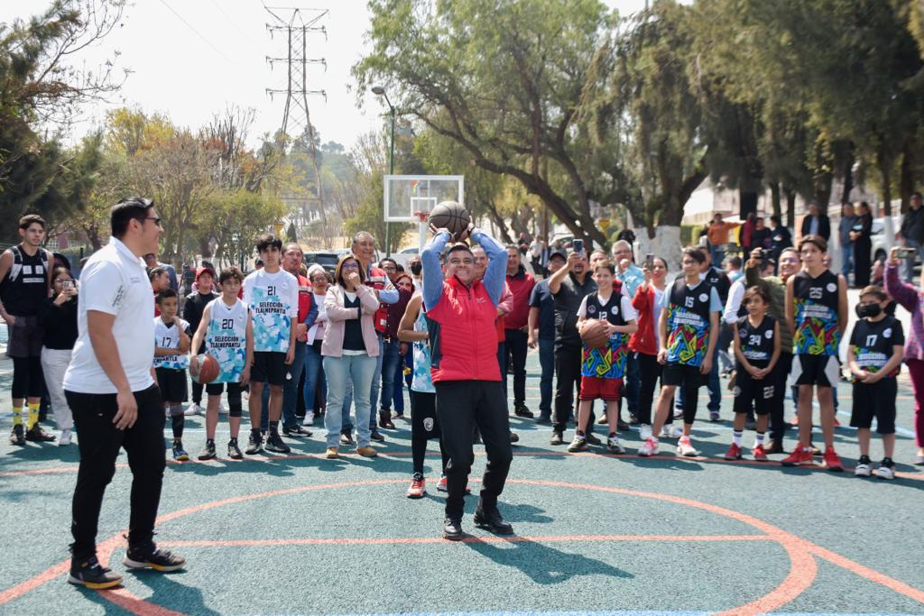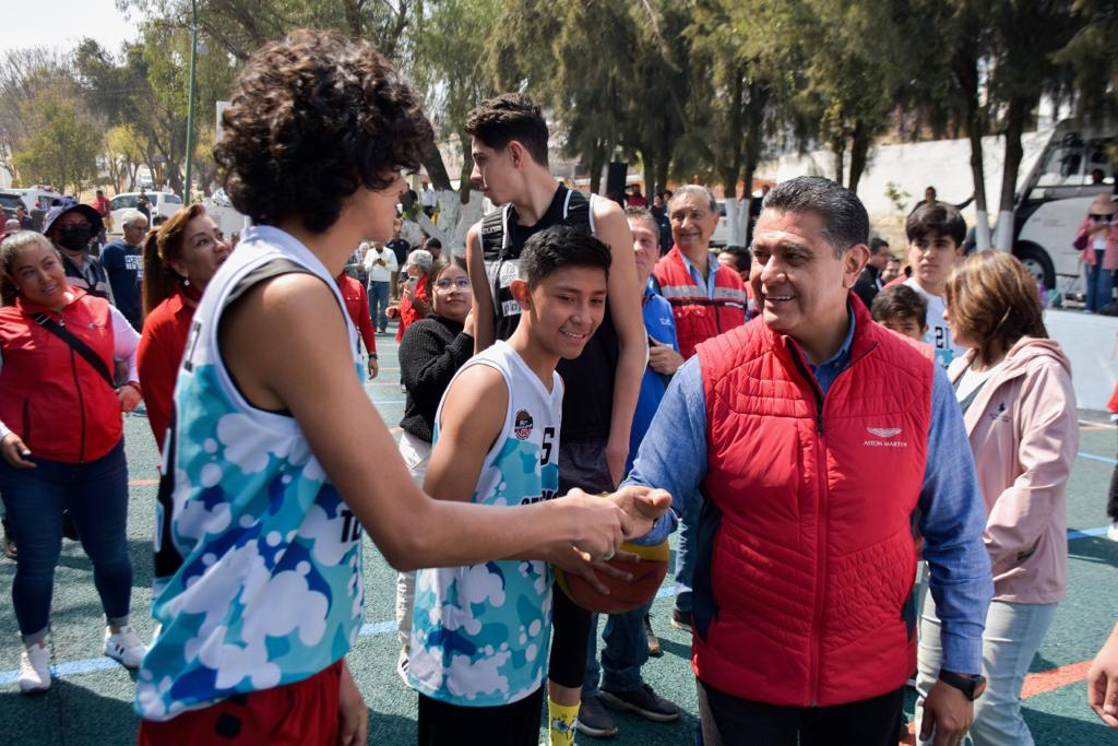 Acompañado del Secretario del Ayuntamiento, Edmundo Ranero; la segunda regidora, Teresa Garduño; integrantes de Copacis y titulares de diversas áreas de Gobierno, el Alcalde inauguró la cancha deportiva con unos tiros de canasta junto con los integrantes de la selección municipal de básquetbol; posteriormente, fungió como árbitro al lanzar al aire el primer balón de un partido entre los seleccionados.