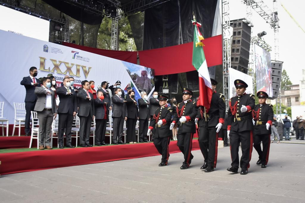 El Presidente Municipal, Marco Antonio Rodríguez Hurtado encabezó la ceremonia con motivo del 74 aniversario de la a Erección de Tlalnepantla de Villa a Ciudad, conmemoración con la que dan inicio los festejos patrios en esta localidad.