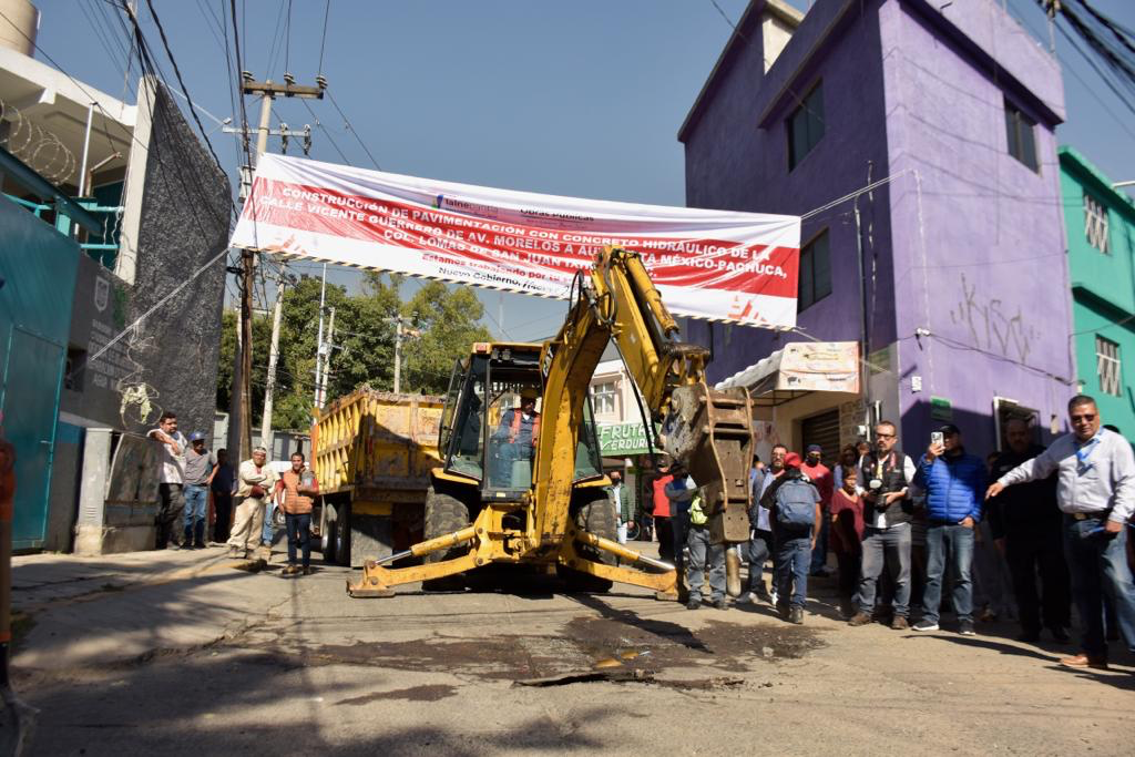 Posteriormente inició los trabajos de pavimentación con concreto hidráulico en tres mil 578 metros cuadrados de la calle Vicente Guerrero, de avenida Morelos a la autopista México-Pachuca, en Lomas de San Juan Ixhuatepec, obra que requerirá un presupuesto de 10 millones 982 mil pesos.