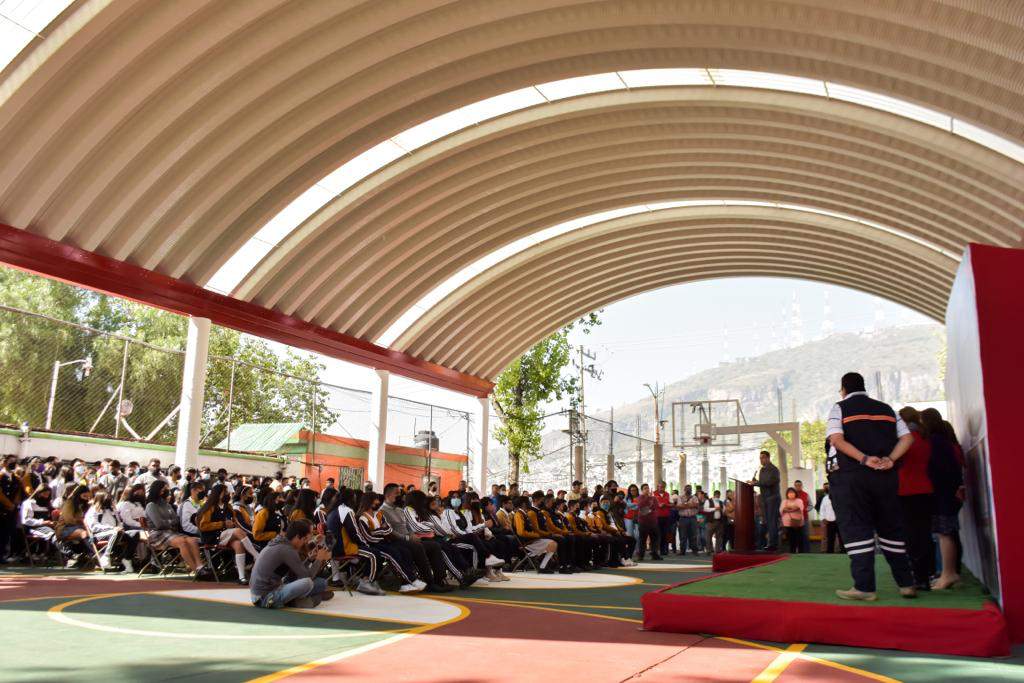 El Presidente Municipal inauguró la pavimentación con concreto hidráulico de cuatro mil 830 metros cuadrados de la calle Asociación de Excursionismo del DF, en la colonia Lázaro Cardenas 2ª Sección, obra en la que se ejerció un presupuesto de siete millones 369 mil pesos, área en donde también se instalarán 39 luminarias para una mayor iluminación de la zona. De igual forma entregó el arcotecho de la Preparatoria 97, plantel donde con una inversión de un millón 350 mil 531 pesos