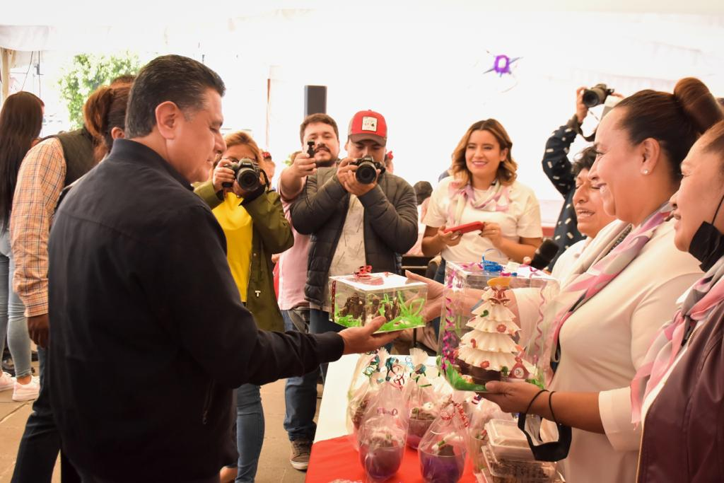 «Con los talleres que ustedes han tenido a bien tomar, prepararse, capacitarse, confiando en la Administración de quienes han estado llevando estos trabajos. La idea es que este centro de capacitación se vuelva activo y productivo porque la intención es que esté una parte para estar haciendo y trabajando lo que ya han aprendido, y otra parte para exposición», señaló al inaugurar la Expo Mujer Emprendedora 2022 en compañía de su esposa María Gómez Martínez.