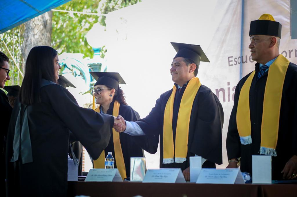 El Dr. Rodolfo Cruz Vargas, Director de la Escuela Normal expresó, «la identidad de ser profesor es algo que ustedes empezaron a trabajar desde aquí, en estas aulas y en estos espacios, nosotros hemos trabajado con ustedes principalmente para develar su vocación, la vocación de enseñar. Ustedes son profesores en formación desde el primer día que llegaron y hoy que se titulan, tienen el desafío de poner en práctica todo lo aprendido en sus aulas y comunidades, ser inclusivos y un ejemplo a seguir con su dedicación y entrega.