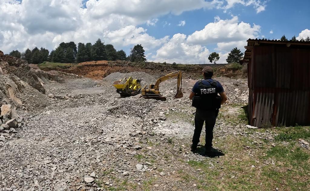 La Fiscalía General de Justicia del Estado de México, con base en sus atribuciones, inició proceso de extinción de dominio sobre los inmuebles, numerario, vehículos, mina y maquinaria asegurados.