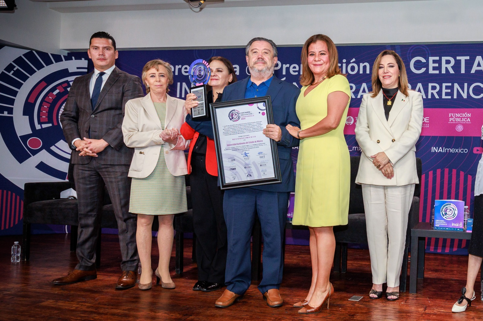 Por impulsar e implementar herramientas, aplicaciones y plataformas tecnológicas que trabajan en beneficio de la transparencia del país, la Universidad Autónoma del Estado de México (UAEMéx) fue doblemente premiada en la categoría: Instituciones Académicas en el Certamen de Innovación en Transparencia 2023 al que convocó el Instituto Nacional de Transparencia, Acceso a la Información y Protección de Datos Personales (INAI).