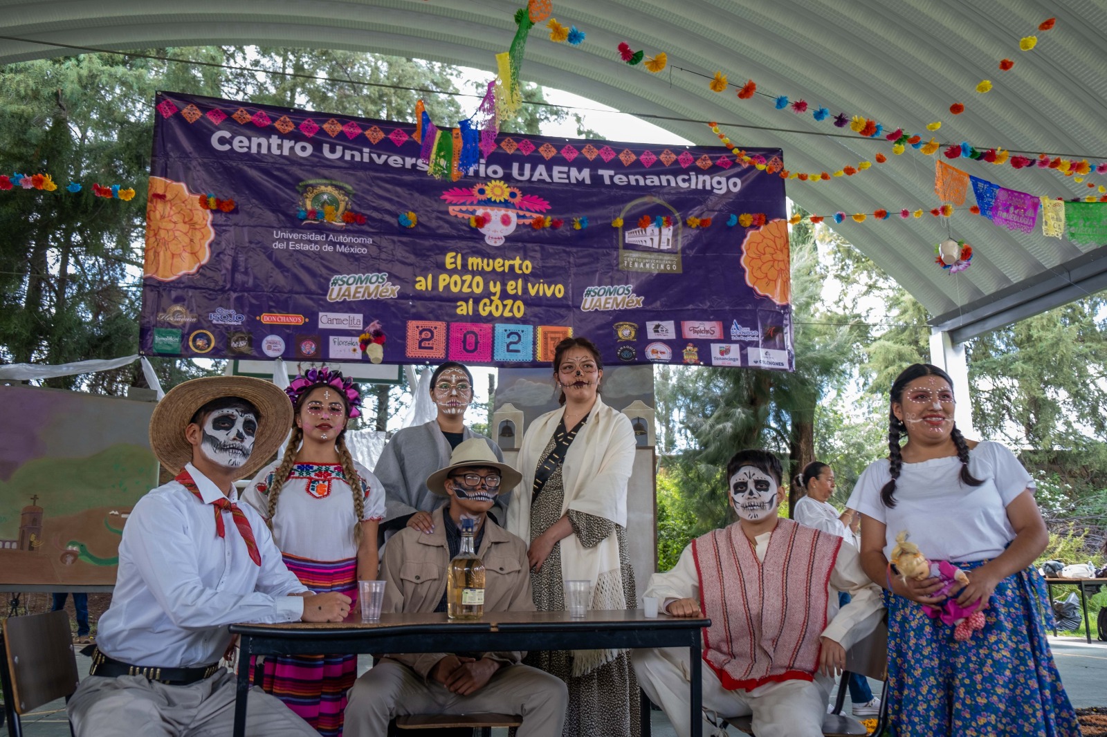 Tenancingo, Méx; 01 de noviembre de 2023. Estudiantes, académicos y trabajadores administrativos del Centro Universitario Tenancingo de la Universidad Autónoma del Estado de México (UAEMéx) participaron en la edición 2023 del Festival “El muerto al pozo y el vivo al gozo”, que tiene como propósito resaltar las tradiciones y costumbres alusivas al Día de Muertos.