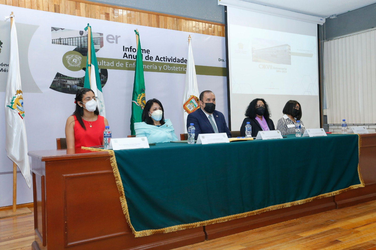 Asimismo, Zepeda Mondragón y Ángeles Ávila encabezaron la instalación de la Cápsula del Tiempo 2023-2048 de la Facultad de Enfermería y Obstetricia, la cual quedó conformada con el depósito de archivos y objetos históricos o destacados del organismo académico, a propuesta de su comunidad docente, estudiantil y administrativa.