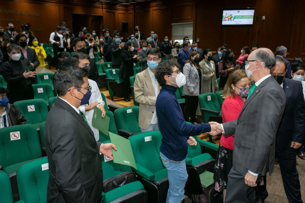 Durante la ceremonia, que se realizó en la Sala del H. Consejo Universitario “Lic. Benito Juárez García” del Edificio de Rectoría, se entregaron simbólicamente 20 de las 18 mil 785 becas, estímulos o apoyos otorgados en diversas modalidades como excelencia académica, desarrollo en la investigación, formación universitaria, prácticas profesionales o estancias profesionales, servicio social, fomento a la salud, reembolso parcial de inscripción, mentoría académica, talento científico, artístico, cultural, deportivo y jóvenes ecologistas, entre otros.