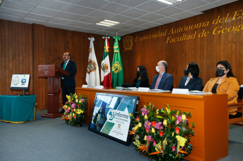 La Facultad de Geografía poseé un alto sentido de responsabilidad y colaboración, gracias a esto hemos podido establecer distintos convenios de colaboración que han beneficiado a esta comunidad universitaria afirmó el rector de la Universidad Autónoma del Estado de México (UAEMéx), Carlos Eduardo Barrera Díaz.