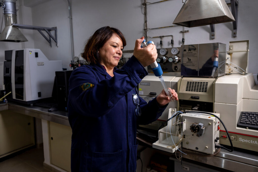 Toluca, Méx; 07 de enero de 2024. Para determinar la calidad del agua de una forma económica, rápida y que genere menos residuos contaminantes, María Guadalupe Fonseca Montes de Oca, investigadora y profesora del Instituto Interamericano de Tecnología y Ciencias del Agua (IITCA) de la Universidad Autónoma del Estado de México (UAEMéx), se ha especializado en la aplicación de técnicas denominadas a microescala, las cuales son un método que utiliza menos cantidad de muestras y reactivos químicos.