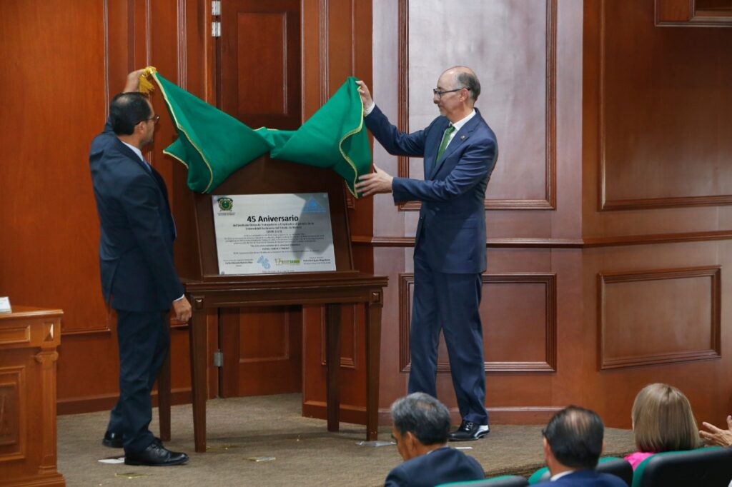 Ante el secretario general del SUTESUAEM, Pedro Rodríguez Magallanes, el rector de la UAEMéx reconoció la madurez alcanzada de esta organización gremial durante estos 45 años lo que les ha permitido obtener logros laborales.